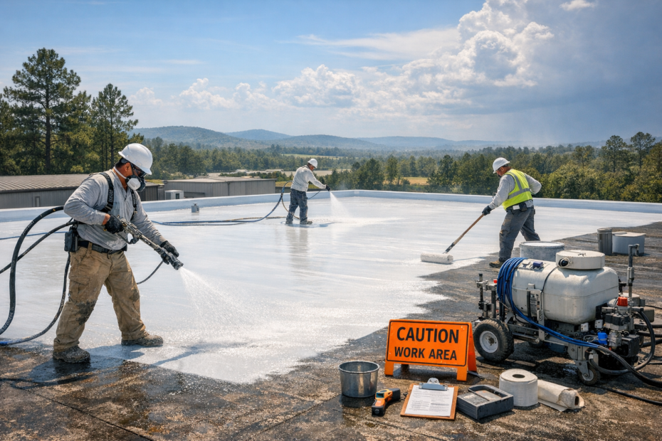 – A final walk-through inspection and documentation for the roof coating warranty.